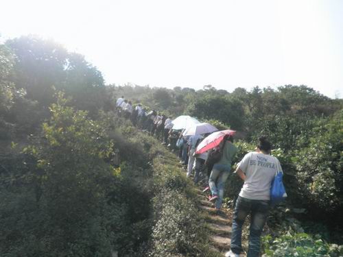 早晨七点半,栖风的成员们于北校门口集合。在拍照留念之后,社长便带领着一行人浩浩荡荡地向大罗山进军。参加采风的多是大一新生,大家彼此介绍认识,交流老员工活,气氛轻松愉快。步行至大罗山脚,在观望了一棵百年古树之后,社员们开始爬山。欣赏着沿途的风景,谈论着生活琐事,社员们忘记了爬山的辛苦,在大罗山上愉快地度过了一个上午。