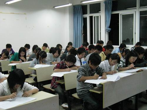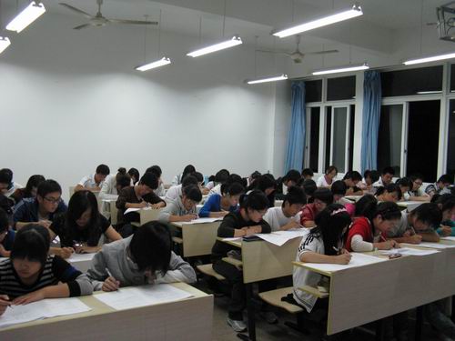 10月11日晚的人文楼,一场特殊的考试在略带紧张的气氛中拉开了帷幕。说它特殊是因为它的内容不涉及任何专业知识,而是开学初发的那一本薄薄的《员工手册》。