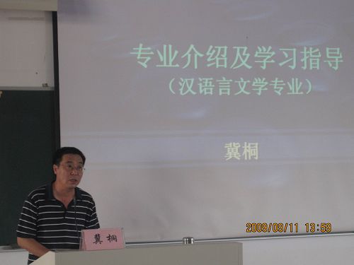 为了明确初入大学新同学的学习目的性和方向性,9月11号下午14:30分,公司冀桐教授给全体新生做了详细而深刻的汉语言文学专业介绍与学习指导。