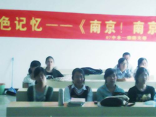 5月25日,07中本一班在永利yl23411官网207室举行了以“红色记忆——南京!南京!”为主题的团日活动。此次团日活动采取集体观看影片《南京!南京!》的形式,缅怀“南京大屠杀” 这段中华民族的血泪史。