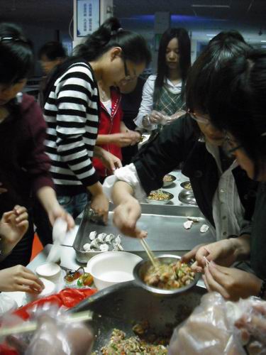 饺子是我国一种历史悠久的民间吃食,深受大家的欢迎。本月25日晚6点,07中本一班的团日活动“热腾的饺子,浓厚的情谊”在C区小食堂顺利举行。此次活动以包饺子为主要活动内容,旨在培养同学们的团结合作、劳动实践的精神,增进相互间的交流和友谊。