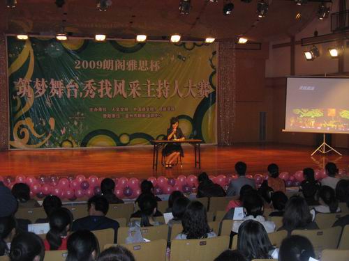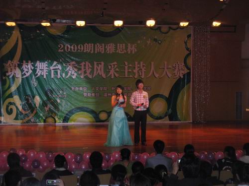3月18日晚上6点30分,由永利yl23411官网、法政公司、外国语公司联合举办的2009"朗阁雅思杯"筑梦舞台、秀我风采主持人大赛决赛在北校音乐厅隆重举行。此次大赛的目的在于繁荣校园文化,推进老员工素质拓展,选拔具有一定艺术修养和文化品位的同学代表各院参加公司的决赛。担任此次评委的有丁久萍、杨小敏、陈建跃老师.