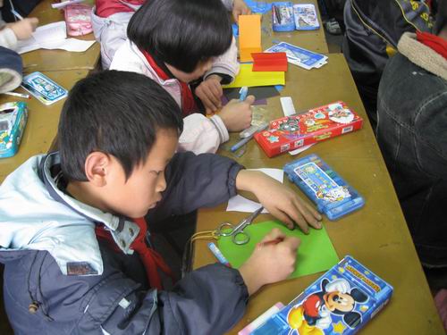 书签的制作使孩子们获得了动手的乐趣,同时也为他们以后看书提供了方便。志愿者们也体会到了孩子们想象力的丰富,回想到了自己的童年。