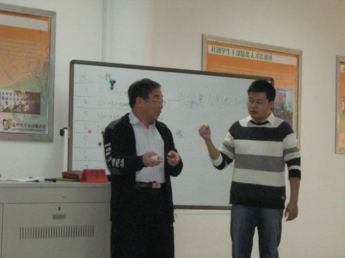 随后,严老师现场指导员工表演他临时构想的短幕剧和朗诵。他指出无论是表演还是朗诵都应该全身心地投入,在表演和朗诵时都要注意节奏。