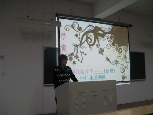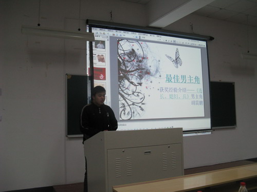 接着,农历剧社指导老师高光明老师发言。作为对话剧有着浓厚感情的他对公司话剧的发展做出了巨大贡献。高老师简短精辟的话语,让同学们对话剧又有了一番新的理解。而后,农历剧社社长、第六届校园话剧节最佳男主角获得者胡震鹏以及最佳导演吴剑波同学更是毫无保留地将自己的经验传授给大家,将现场气氛推向新的高潮!