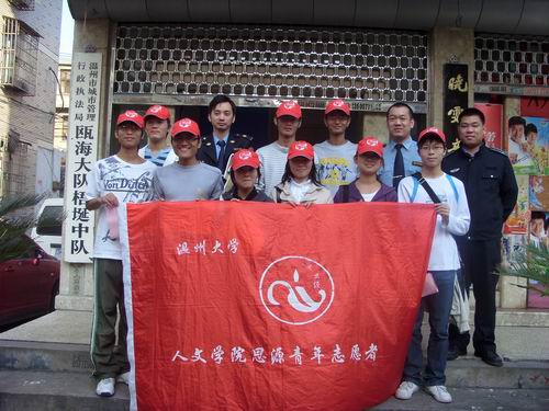 2008年11月12日,永利yl23411官网“思源”青年志愿者协会与温州市城市管理行政执法局欧海分局梧田中队合作开展了一次对梧田街道摊贩的管理宣传活动。