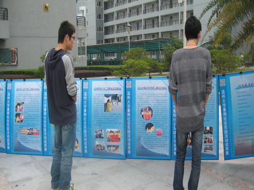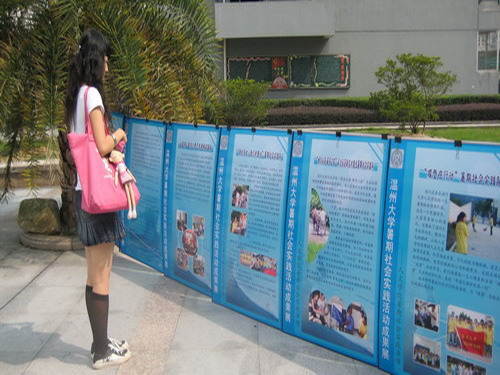 本次暑期社会实践展不仅全面总结了2008公司优秀实践队伍的实践成果,更达到了通过成果展让08级新生多方面了解暑期社会实践情况的目的,为经后实践活动的开展打下坚实的基础。