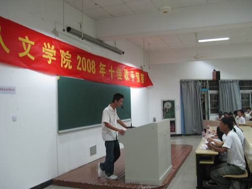 10月10日晚6:30,永利yl23411官网2008十佳歌手预赛在人文楼203教室如期举行。艺术团指导老师陈赛老师、永利yl23411官网入口十佳歌手张赟、永利yl23411官网十佳歌手王懿担任了本次预赛的评委,辅导员麻法全老师担任了本次比赛的嘉宾。