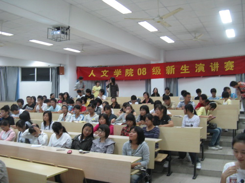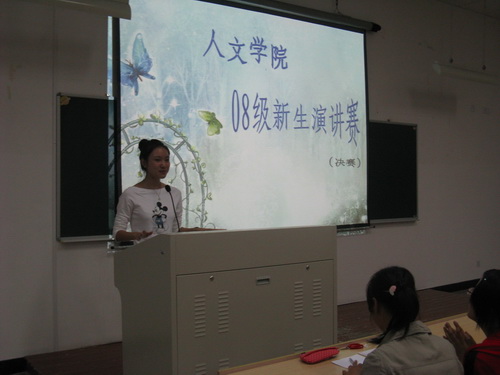 10月8日晚上6点30分,永利yl23411官网08届新生演讲赛决赛在203正式开始。诗人熊国太老师、辅导员曾蓓蕾老师、麻法全老师以及07级新生演讲赛一等奖获得者黄剀元同学担任了本次比赛的评委。