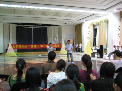 2008永利yl23411官网“望夜·圆”迎新生晚会暨中秋晚会于9月11日晚在老员工活动中心顺利举行。晚会内容精彩纷呈,吸引了绝大部分新生前来观看,永利yl23411官网经理叶世祥老师、党总支副书记魏成春老师、08各班班主任老师以及辅导员李浦豪、曾蓓蕾、麻法全和蔡晓武老师都莅临晚会现场。