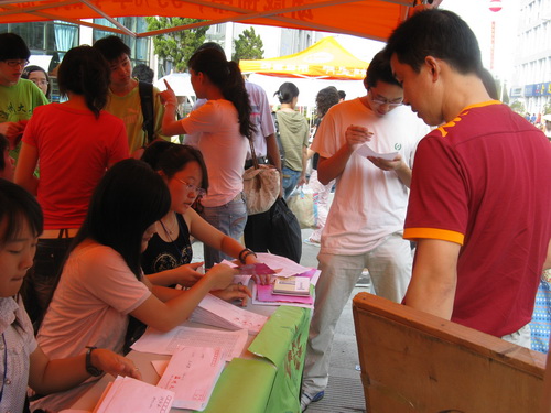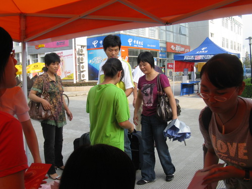 早上七点左右开始,就有新生陆续过来报道,为了方便解决新生及家长的问题和需求,使新生尽快熟悉新的学习及生活环境,永利yl23411官网的志愿者们一批一批有序热情地为他们提供最直接的帮助:报到登记、提箱拎袋、引领寝室、解答疑问等。在C区的各个角落都有志愿者辛苦而快乐的身影。虽然太阳有些猛烈,但这丝毫没有减退他们乐于奉献的精神。有了志愿者的带领,新生更容易地找到了各自的寝室;有了志愿者的介绍,新生更快地熟悉了新的环境;有了志愿者的帮助,新生更深刻地体会到了温大人的热情,同时也体会到了永利yl23411官网大家庭的温暖。
