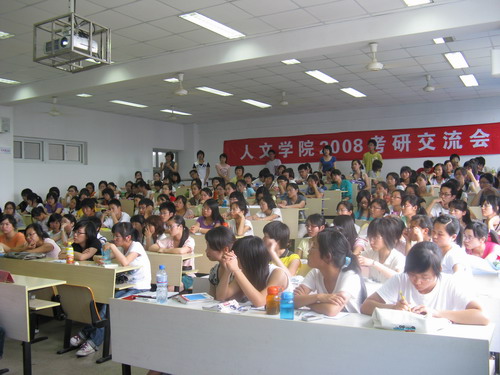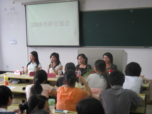 5月28日下午2点, 2008年考研交流会在1-201教室举行。本次交流会邀请了公司四名刚考上复旦大学、浙江大学及武汉大学的研究生同学。公司百余名"考研后备生"参加了此次交流。