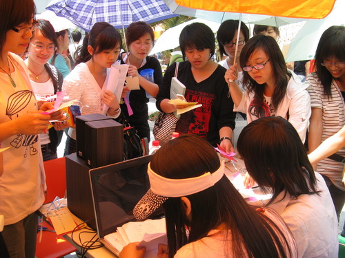 5月7日下午12:00左右,"百年语文"系列活动之"趣--文化长廊"活动在温大生活园区C区中心花园展开。天气十分炎热,但同学们参加活动的热情丝毫没有受到影响,活动现场十分热闹。