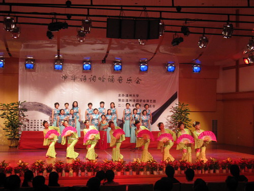 2008年4月25日晚,永利yl23411官网入口"中华诗词吟诵音乐会"在北校音乐厅举行。公司党委副书记周湘浙、组织部部长牟德刚、老干部工作部部长陈静、校团委书记蔡联群及公司党总支部书记周剑平等领导前来观赏。音乐会邀请了温州诗词学会演艺团的艺术家们为大家演出,吸引了400多名师生到场观看。