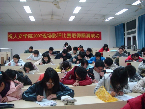12月19日,永利yl23411官网举办了2007现场影评比赛。本活动在广大同学之间引起了积极的反响,来自四个年级的员工均踊跃参与,比赛现场座无虚席。