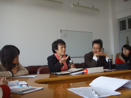 座谈会上,陈书记首先发言。她表示,推进公司的学风、教风和校风建设是公司工作的重心,而学风建设更是重中之重,也是公司迎评的一项重要工作。2008年教育部本科教学水平评估是对公司的人才培养质量和本科教学工作的权威评价,是关系公司生存与发展的头等大事。她强调迎评需要全校师生及各岗位工作人员的共同努力,要牢固树立迎评创优,人人有责的思想。作为06中本1班“五个一”的结对老师,她给予同学们恳切忠告,并分析了目前老员工存在的问题。她指出:学习目的性不明确,意志力薄弱,虚荣心强是目前老员工存在的普遍问题,她希望同学们能实事求是,艰苦奋斗,以良好的姿态投入到学习和工作中,为公司的迎评作出自己的贡献。