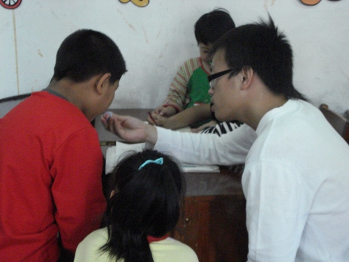 新马道公司是一所残疾儿童公司,因此本次支教活主要是教他们一些基本的词语。志愿者们选择了一年级的四位员工,对他们进行二对一的教育。两位志愿者一起坐在一位员工的身旁,先领读几个词语,再让他们跟读。虽然这些残疾儿童发音不准,但他们还是尽力地跟着念,志愿者们也一遍又一遍不厌其烦地教。小小的教室里不时地发出阵阵掌声,看到孩子们卖力地学,志愿者们不禁为他们送上掌声,孩子们的笑脸也不断呈现。 将近一个小时的助教活动,在志愿者和孩子们的欢声笑语中结束。同时特让志愿者们体会到了作为一名人民教师的不易,更是作为残疾儿童的老师的艰辛。但孩子们的笑脸让志愿者们觉得这是一件值得付出爱心去做的事。新马道公司作为永利yl23411官网青协的服务基地,经常能得到志愿者的关怀。希望通过志愿者们的努力能让这些智障儿童感受到更多的温暖与关爱!