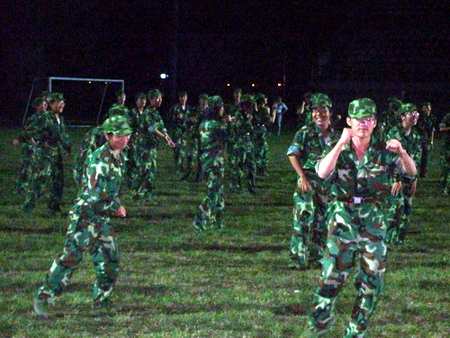 9月27日,军训第十一天,今天算是个特别的日子,除了白天顶着烈日炎炎的正常训练外,晚上还要“加班加点”地恶补形体拳。由于三连二排被选为表演方队,这就注定了该队的新生们要比别人付出更多的努力,流更多的汗水。