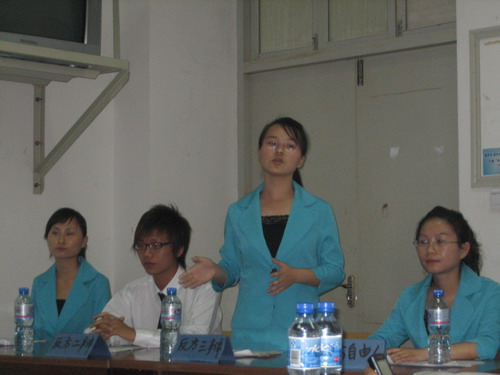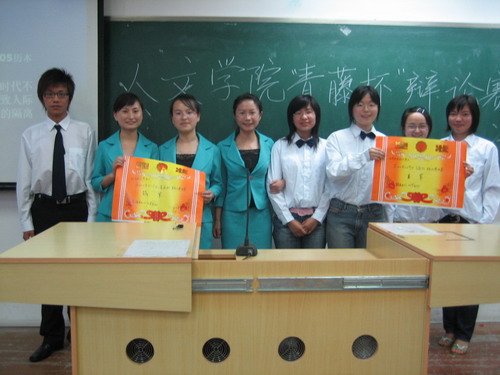 6月1日下午,由永利yl23411官网团委员工会主办的“青藤杯”辩论赛决赛在北校区1号楼201教室举行。王峰、曾蓓蕾老师以及谷超豪奖学金得主许棣同学担任了此次评委。决赛辩论的辩题为电脑时代是否会导致人际关系的隔离,06中本4班为正方,反方为05历本。经过激烈争辩,最终由05历本获得本次辩论赛总冠军。