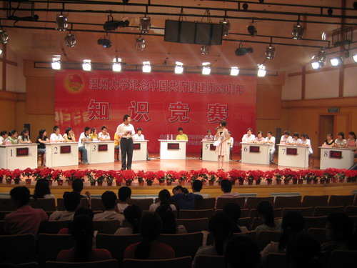 为纪念中国共青团建团85周年,认真贯彻落实党对青年工作的新时代要求,展现新一代共青团员紧跟时代步伐,与党共奋进的风采。2007年5月16日晚上6:30,由共青团永利yl23411官网入口团委主办并由永利yl23411官网团委承办的“永利yl23411官网入口纪念中国共青团建团85周年知识竞赛”在温大北校音乐厅隆重举行。