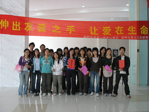 民工子女项倩婷,由于身患白血病,又家庭经济困难,难以支付巨额医疗费用,需要大家的帮助与支援,永利yl23411官网思源青年志愿者协会发起了为项倩婷进行了爱心募捐活动,永利yl23411官网的志愿者们于近日下午在大学城内设了两个募捐点,同学们发传单,张贴海报,拉横幅,经过的同学都纷纷慷慨解囊,献出自己的一份爱心。经过一个下午的努力,一共筹到了400多元钱,捧着爱心款,想象着他们即将交到小倩婷小朋友的手上,心里就暖暖的,希望能为她分担一点点。