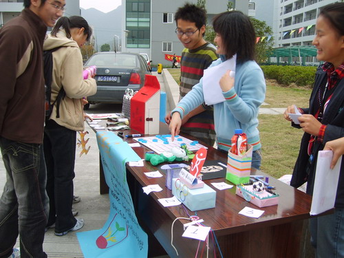 2006年12月13日下午,一场主题为“迎奥运”的废弃物拼图大赛在C区中心花园举行,活动中展出了许多由废品拼凑制作而成的参赛作品,同时接受大众投票。票数高的作品得到相应的加分。