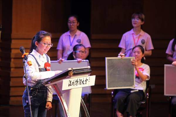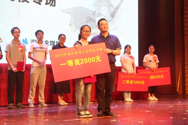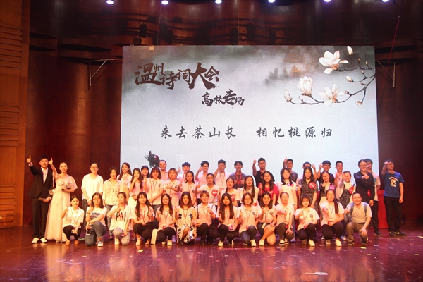 5月22日18:30,永利yl23411官网入口第十五届百年语文系列活动之温州诗词大会高校专场于南校音乐厅盛大举行并圆满落下帷幕。“白雪却嫌春色晚,故穿庭树作飞花。”当永利yl23411官网15中文专业的朱温蓉说出这句出自韩愈《春雪》的诗句时,全场皆为她丰富的诗词积累而惊叹鼓掌。经过攻守擂对决、抢答题等环节后,朱温蓉同学最终在争夺诗词状元的环节中夺魁,一举拔得比赛头筹。