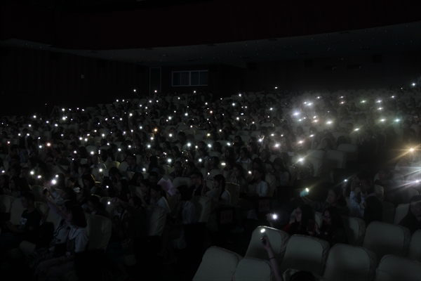 在呆萌逗趣的《大王叫我来巡山》舞蹈中,毕业生晚会正式拉开序幕。本场晚会特意邀请到了cosmos男团,劲歌热舞瞬间点燃了现场的气氛。13历本黄欢同学的一曲《阿楚姑娘》带我们相依看月亮,嗅桂花淡淡清香。接下来,两位毕业班的学长用一出相声诙谐地回忆了大学四年的酸甜苦辣,现场的观众时不时发出阵阵笑声。16广本的同学们以一段黑白配的炫酷舞蹈,为毕业的学长学姐们献上一场视觉盛宴。而15中本的同学,则以一出颠覆的情景喜剧《新甄嬛传》令观众们捧腹大笑。悠扬的小提琴、清脆的钢琴声加上翩跹的舞姿,一幕《月下独舞》让大家感受到独属于人文的才情。13广本的同学们一首改编版《奇妙能力歌》,细数这四年在广告系的点点滴滴,抒发对人文的依依不舍。在VCR视频中,再最后一次聆听,来自老师的谆谆教诲;再最后一次呼唤,人文是永远的家。最后,13中本的男生们声嘶力竭地高唱着“让所有的人,坚信我们为爱”,为本次晚会画下一个圆满的句号。