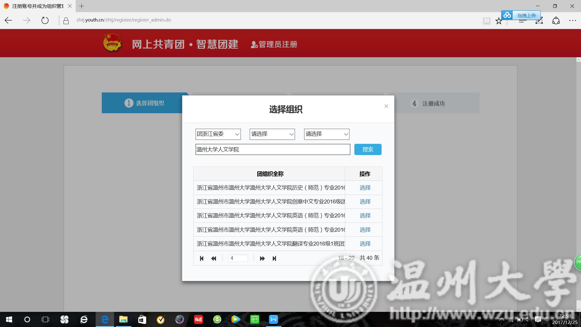 (1) 选择“团浙江省委”,输入“永利yl23411官网”,点击“搜索”。