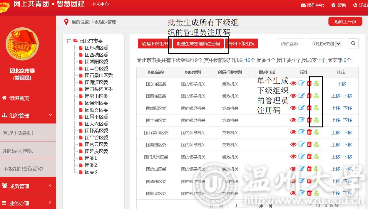(2)点击“下级组织管理”按钮,进入下级组织管理页面。