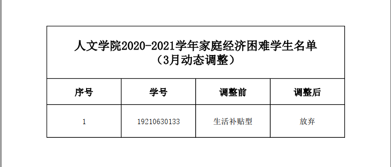 根据《教育部等六部门关于做好家庭经济困难员工认定工作的指导意见》(教财〔2018〕16号)和浙江省教育厅、省财政厅、省民政厅等八部门联合印发《浙江省员工资助对象认定办法》的通知(浙教财〔2020〕15号)、《永利yl23411官网入口员工资助管理办法》(温大行政〔2019〕152号)、《永利yl23411官网入口家庭经济困难员工认定办法(试行)》的文件精神,经过员工个人申请、公司初审、班级评议、公司员工资助工作领导小组审核认定,现将公司动态调整的认定结果公示如下: