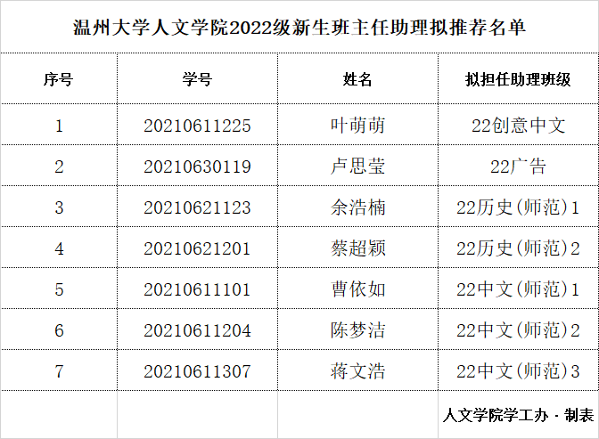 根据公司《关于招募2022级新生班主任助理的通知》要求和相关文件精神,经过员工个人申请、公司初审、公开竞聘等环节,按照专业相近原则,现将2022级新生班主任助理拟推荐名单公示如下。