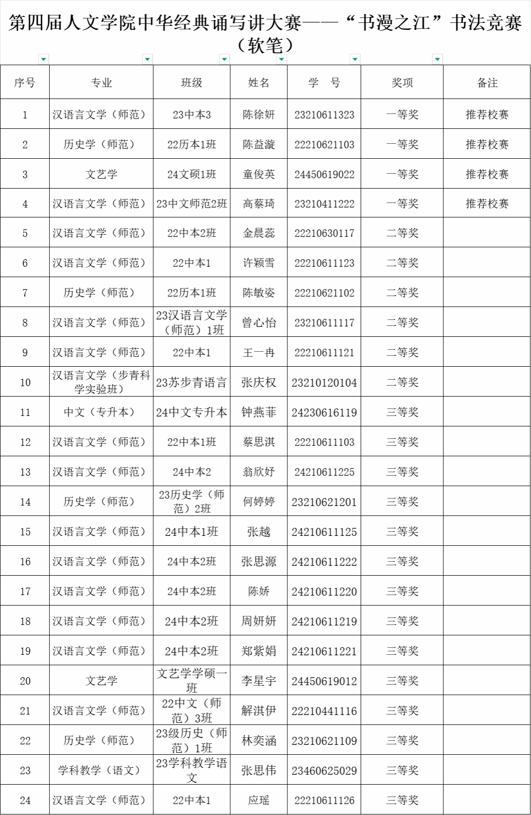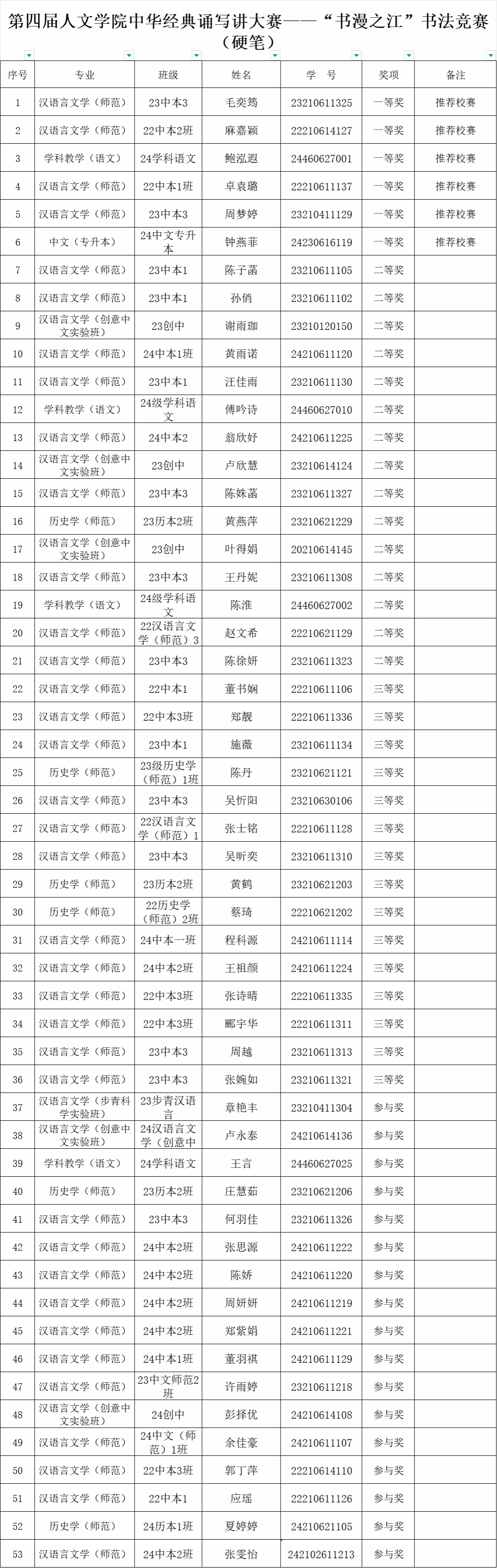 经个人报名、专家评审,永利yl23411官网第四届中华经典诵写讲大赛——“书漫之江”书法竞赛已于4月2日圆满结束,现将比赛结果予以公示,公示时间:2025年4月3日-4月8日。