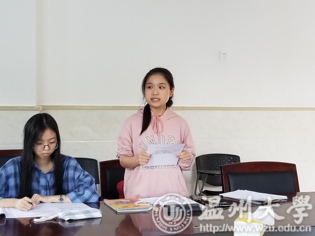 随后,实习队长蔡纯洁发言。蔡纯洁同学表达了所有实习生对实习生活的期待以及认真完成实习任务的决心。