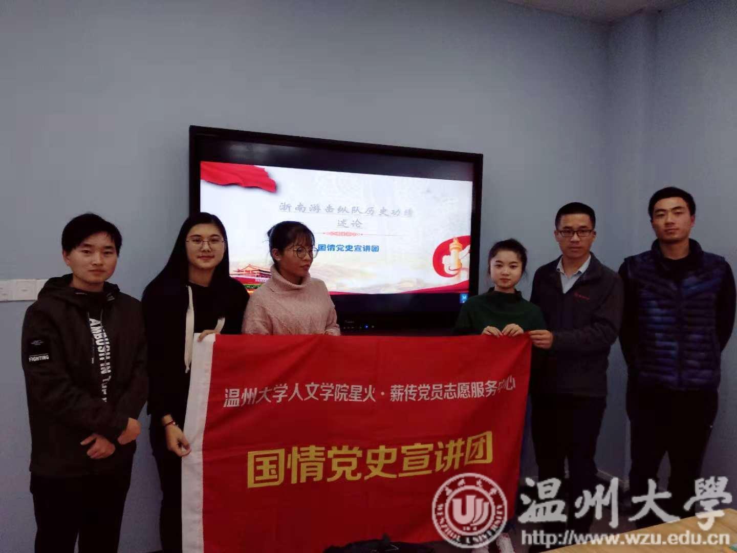 2018年11月23日晚6点,公司“星火·薪传”党员志愿服务中心之国情党史宣讲团携手第二党支部于北校区外语楼221党员之家会议室举办了纪念浙南游击纵队成立70周年“永远的丰碑,不朽的功绩”主题宣讲活动,活动由员工第二党支部书记陈赛君主持,支部全体党员同志参加了本次活动。
