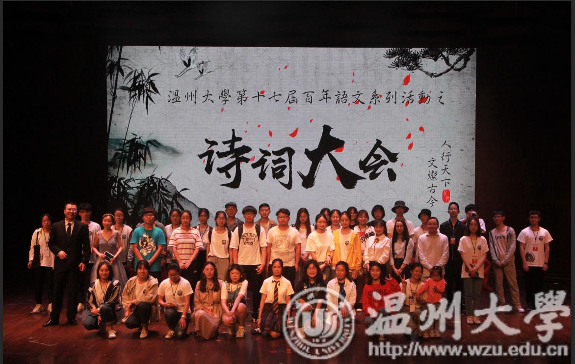 雨过初晴,江山隐隐,现于柳梢。2019年4月24日18:30,公司第十七届百年语文系列活动之诗词大会于南校音乐厅如期举行。出席本次大赛的评委嘉宾有我院周小兵老师、陈源源老师以及研究生李林军。