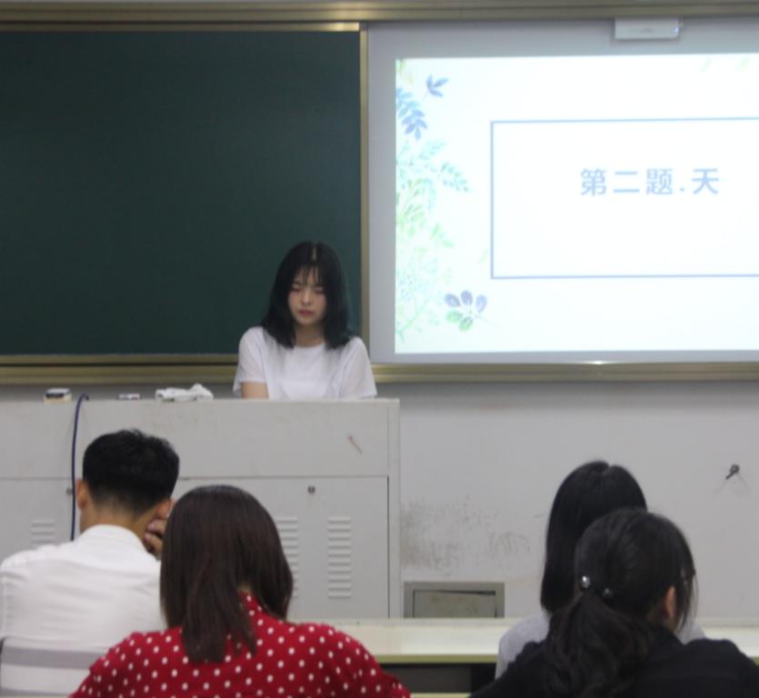 腹有诗书气自华,最是书香能致远。2019年5月17日晚18:30,永利yl23411官网入口第三届研究生“罗山情‧诗歌节”初赛在北校区人文楼成功举办。本次比赛在人文楼三个教室同时进行,分别由麻露云、王美霖和赵丽娜三位同学主持,来自各个公司的同学积极参加。