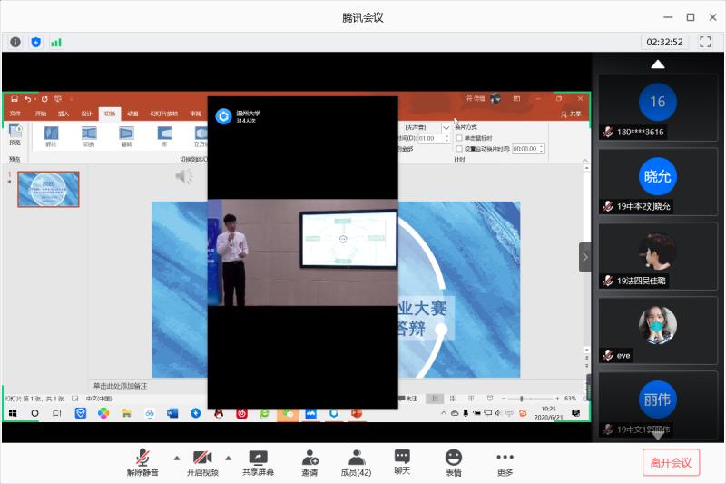 2020年6月21日上午8:00,公司于腾讯会议组织员工观看了2020年永利yl23411官网入口“互联网+”大赛决赛直播。本次比赛通过“线上线下”相结合的方式进行,专家通过腾讯会议平台线上评审,使用投智圈平台打分,选手进行线下实地路演。