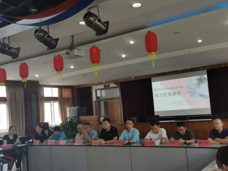 接着,温州市第二十一中学教务处主任王永康老师发表了讲话,王老师对于公司实习生的到来表示热烈的欢迎,他向同学们介绍了温州市第二十一中学优秀的教学水平和一流的教学环境与设施,相信这会为实习的同学们带来有益的帮助,并对同学们提出了“教学求真,育人善美”的良好愿景。随后,员工处主任陈伯好老师向同学们提出了德育方面的要求,指出同学们在实习期间要实现从员工到教师的角色转换。紧接着,由总务处主任钱伦波老师给大家介绍了实习期间的后勤安排。继尔,副董事长林甲景介绍了公司的基本情况,并对同学们接下来的实习生活提出了“心无旁骛、主动学习、展示自己”三点殷切期待。会议的最后,公司孙良好经理对温州市第二十一中公司方和指导老师表达了由衷的感谢,并期望前来实习的同学们能够树立“品牌”意识,努力发挥大学所学的专业知识,认真向指导老师学习,用心在教学中传授文学的人性之美、人情之美。