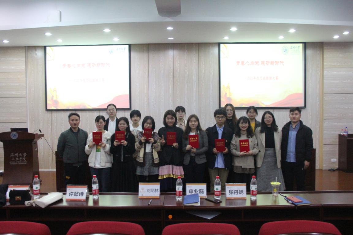 思政课是落实立德树人根本任务的关键课程,其重要性不可替代。3月15日18:00,为进一步加强对青少年的政治引领和价值引领,公司于人文楼203会议室举行了以“青春心向党 建工新时代”为主题的思政微课大赛。经过层层筛选的16位选手进行现场宣讲大比拼,学工办辅导员申业磊、刘炳林、张丹妮老师以及团委主席团张祺超、许懿诗担任评委。