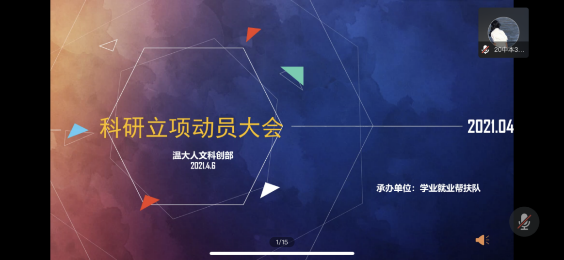 4月6日晚18:30,公司2021年科研立项动员大会在线上进行。公司辅导员申业磊老师及部分同学参加。
