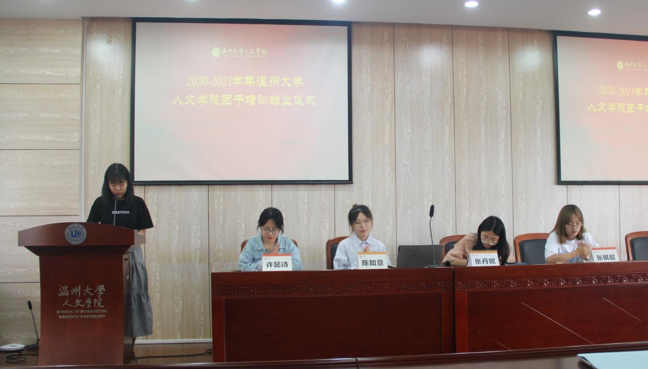 6月2日下午13:30,公司2020-2021学年团干培训结业仪式于人文楼203报告厅进行。院学工办辅导员张丹妮老师、永利yl23411官网员工第五党支部预备党员陈如意、员工团委副书记张祺超、许懿诗以及全体人文团学干部参加。