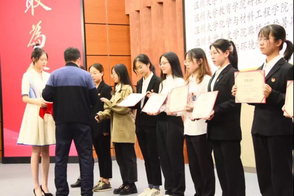 实践队队长蔡超颖同学代表永利yl23411官网廊桥遗梦暑期社会实践队进行“十佳精品”实践团队的风采展示,向大家介绍了实践队八年以来如何薪火相传,更深入挖掘廊桥文化所得出的成绩、成果、成效,最终取得了第七名的好成绩。除此以外,实践队成员、指导老师也获得了“优秀通讯员”、“优秀摄影奖”、“先进个人”、“优秀指导老师”等奖项,永利yl23411官网副教授、廊桥遗梦实践队领队祁刚老师,实践队队员蔡超颖、叶奕雯、俞晓倩作为实践队代表上台领奖。