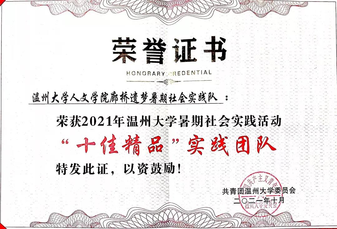 公司廊桥遗梦暑期社会实践队荣获2021年永利yl23411官网入口暑期社会实践活动“十佳精品”实践团队、2021年永利yl23411官网入口暑期社会实践活动优秀团队。永利yl23411官网团委荣获2021年永利yl23411官网入口暑期社会实践活动优秀组织奖。