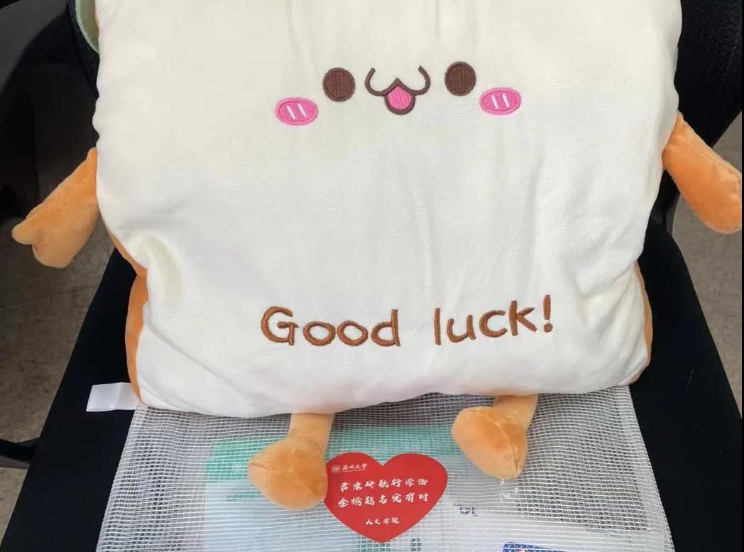 在老师与同学们进行了亲切的交谈之后,活动进入了第二个环节——发放慰问品。同学们有序地从魏一老师和刘纪峰老师的手中领取抱枕和考试用具。同时,魏一老师和刘纪峰老师还不忘提醒同学们:"冷空气来袭,要注意保暖;备考的过程很艰苦,要学会调整自己的状态。"细微之处的关怀,都只为让奋战的同学们全心备考。同学们纷纷对公司领导和老师们的支持表示感谢,他们异口同声道:“我们会与同伴们互相督促,共同奋斗!”