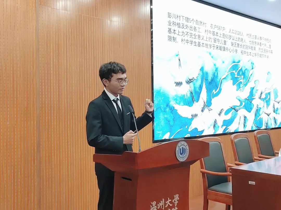 吴嘉沁同学宣讲的主题是《红色家乡——温州的破与立》。宣讲过程中,她如是说,“温州的破与立,向我们展现了新一代温州人将在困难中奋斗,在挫折中进取。相信在未来,新一代温州青年传承好红色基因,始终坚守初心使命,持续激扬新时代温州人精神,让红色精神绽放出更加绚丽的时代光芒”。