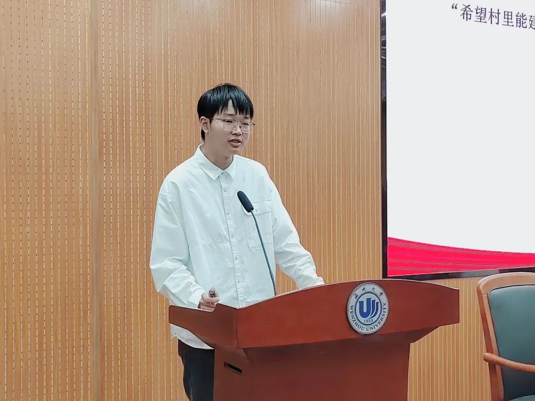 裘钱浩同学的宣讲主题是《让梦想瓜熟蒂落,与村民同频共振》。他以党员干部王丰华的事迹为例,讲述了王丰华“时刻把群众安危冷暖挂在心上,始终把党和人民的事业放在心中最高位置,以行动、以生命完成庄严承诺”的卓越精神。而我们作为新时代的中国青年,生逢其时、重任在肩,施展才干的舞台无比广阔,实现梦想的前景无比光明。