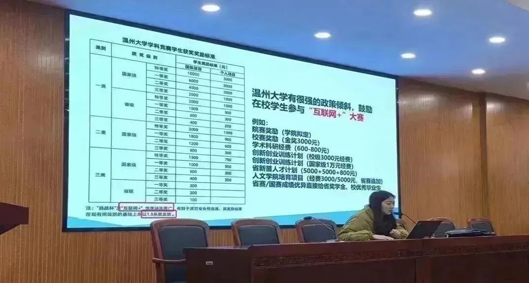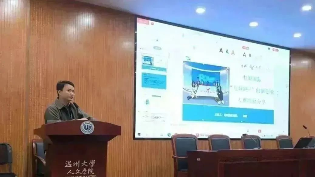 海瓯翼行团队是国内首个内容免费无版权并且通过高素质外籍传播官向世界传递中国文化的公益团队,获中国国际互联网+创新创业大赛金奖。团队负责人陈媛在讲座上就大赛介绍、项目选题建议、团队组成、大赛中计划书的排版与展示等方面展开相关经验的分享。