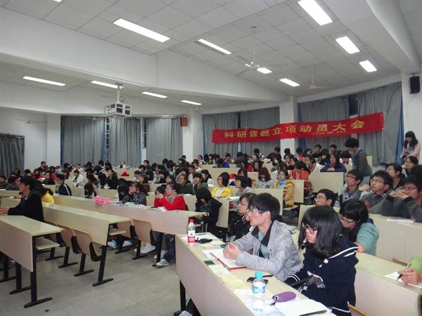 2012年11月22日,永利yl23411官网科研立项动员大会在101教室举行。本次动员大会邀请到了优秀员工代表杨立忠、骆胜男和李婷兰为大一同学讲解科研立项的具体事宜以及进行学习性的经验交流活动。