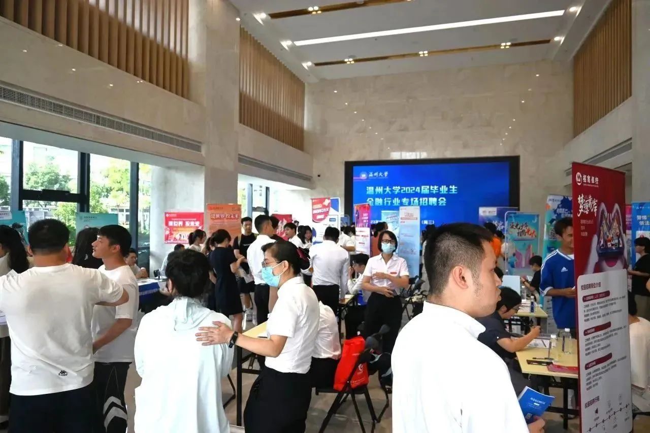 为了更好地满足2024届毕业生和金融行业用人单位秋季招聘需求,搭建有效的洽谈平台,拓宽员工求职就业的渠道,9月20日下午,“金彩人生 职等你来”金融行业专场招聘会于永利yl23411官网入口南校区科技综合大楼顺利举办。在温州市人民政府金融工作办公室的大力支持下,本次招聘会云集了国有六大银行,申万宏源、上海证券、中信证券、中国人寿、泰康人寿等金融行业53家头部企业参会,提供了1700多个高质量的就业及实习岗位,堪称一场含“金”量超高的招聘会。本次招聘会由温州市人民政府金融工作办公室、永利yl23411官网入口联合主办,校招生与就业处、商公司、永利yl23411官网、外国语公司共同承办。